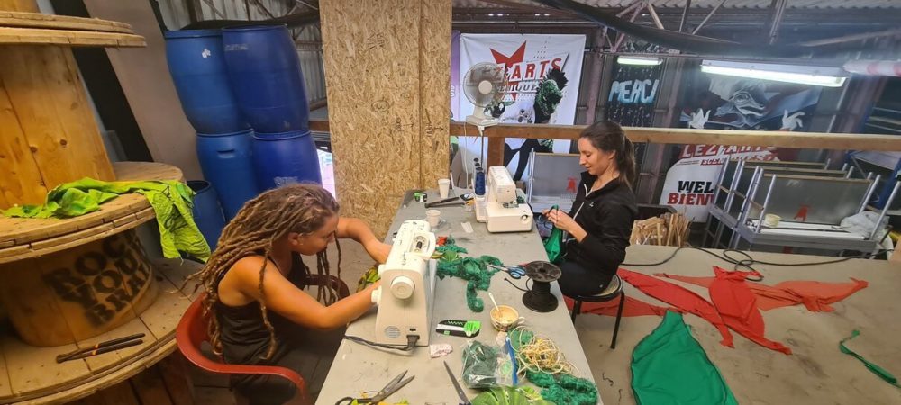 Ateliers déco : Ca coupe, ca coud, ca bricole.. et ca sort des fleurs géantes, immédiatement mises en place sur les Remparts Sonores…