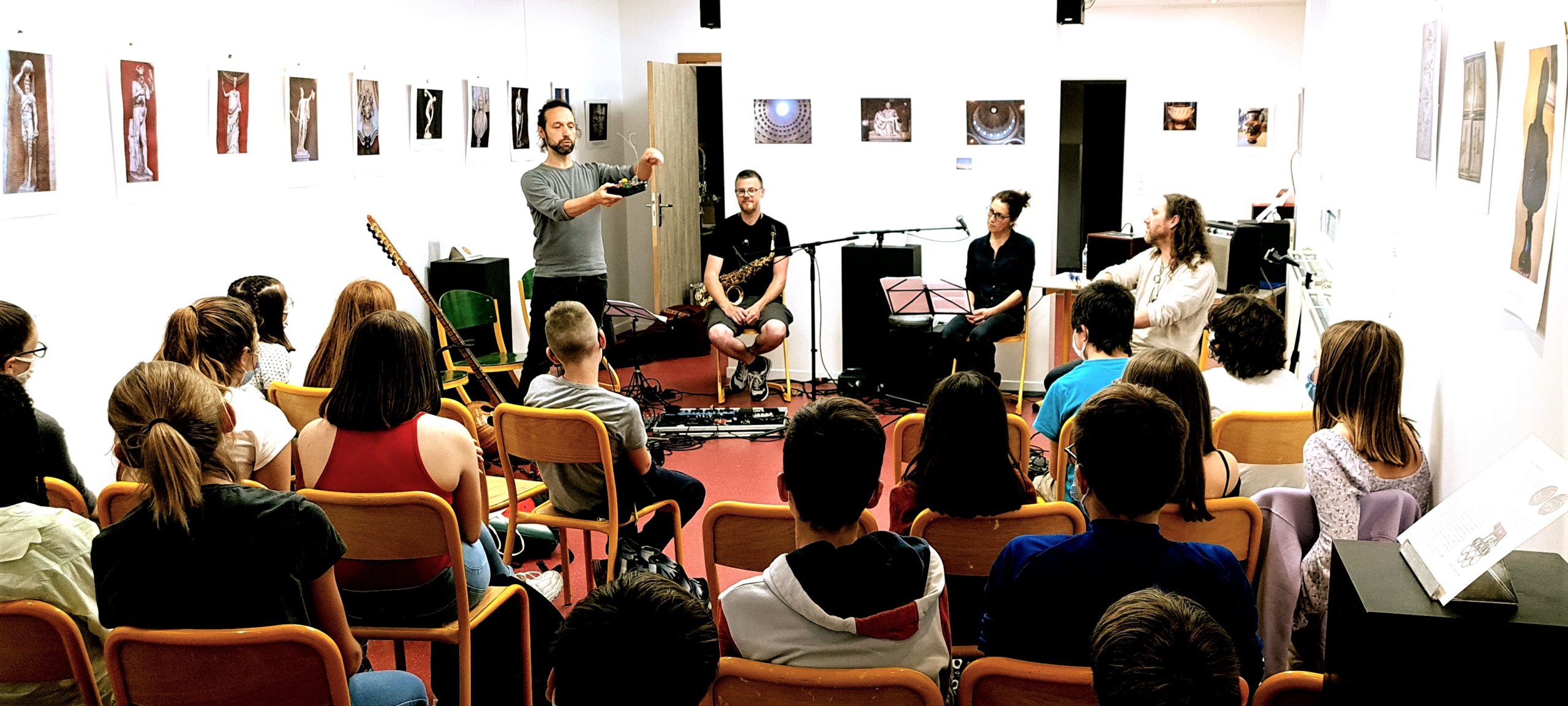Au terme d’une année scolaire difficile à tous égards, Zone51 a souhaité offrir aux élèves de Sélestat (et à leurs enseignants!) un « cadeau » musical, sous forme de rencontres et de mini-concerts dans les écoles et collèges, avec des artistes « hors du commun » du territoire. Créer l’inattendu au détour d’un couloir d’école ; susciter le plaisir et l’émotion à travers des rencontres artistiques fortes ; transmettre, et sensibiliser les élèves à la diversité des pratiques artistiques actuelles, voici les principaux objectifs de cette tournée scolaire menée tout au long du mois de juin auprès de 32 classes de maternelle, élémentaire et de collège.