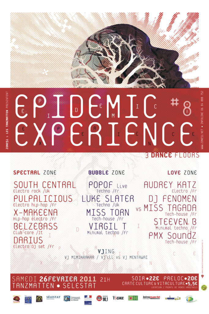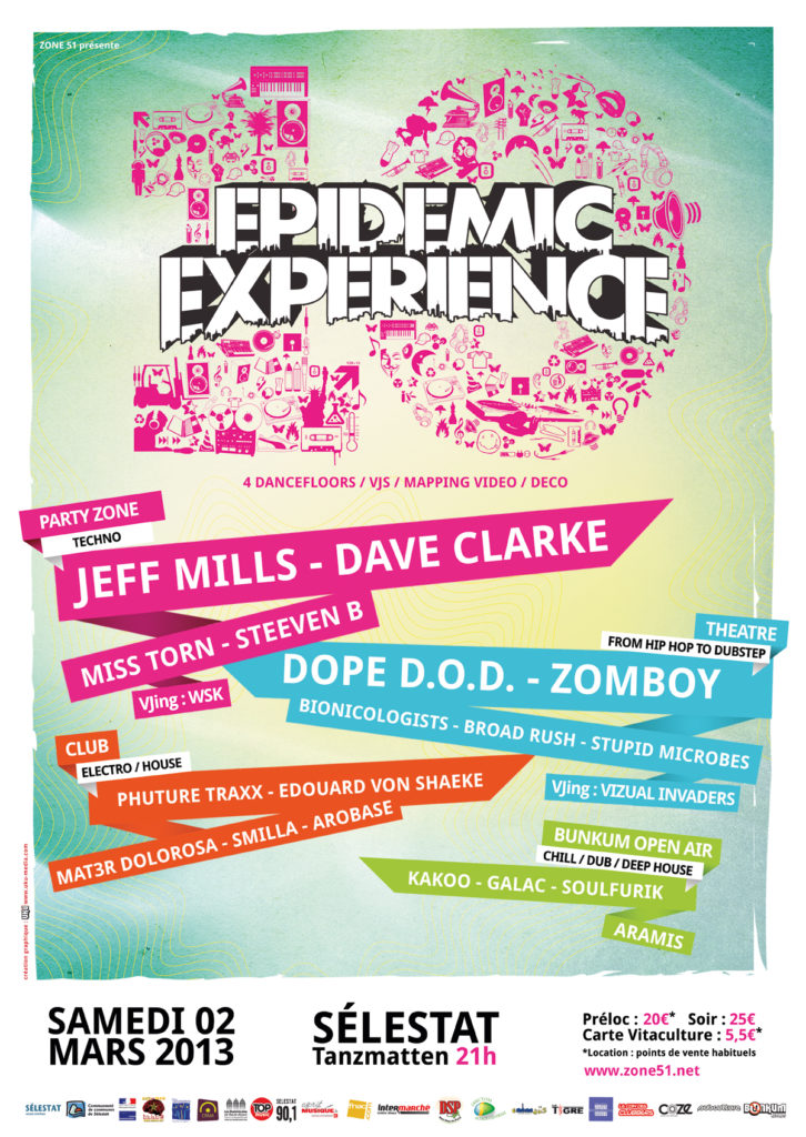 JEFF MILLS, DAVE CLARKE, MISS TORN, STEEVEN B, DOPE D.O.D., ZOMBOY, BIONICOLOGISTS, BROAD RUSH, STUPID MICROBES, PHUTURE TRAXX, EDOUARD VON SHAEKE, MAT3R DOLOROSA, SMILLA, AROBASE, KAKOO, GALAC, SOULFURIK, ARAMIS